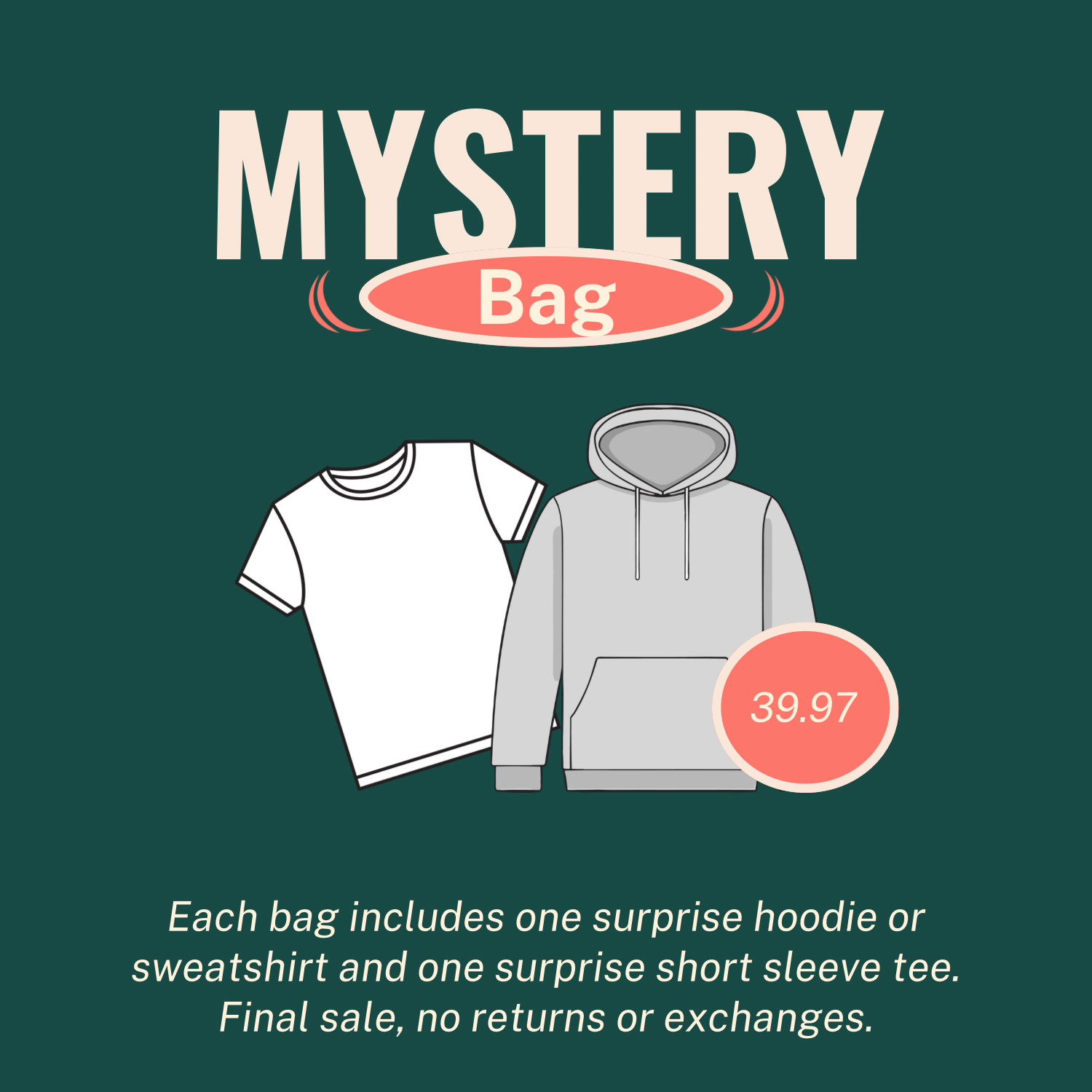 Like a little thrill with your shopping? Our Mystery Bags are packed with surprises you’ll actually wear. Each bag includes: