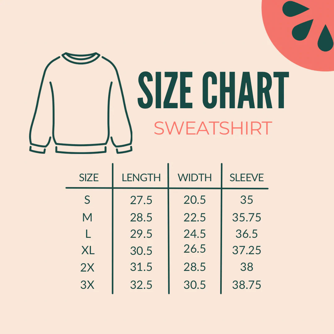 Unsure of your size? Measure the width of your favourite sweatshirt (armpit to armpit) and length (top to bottom).