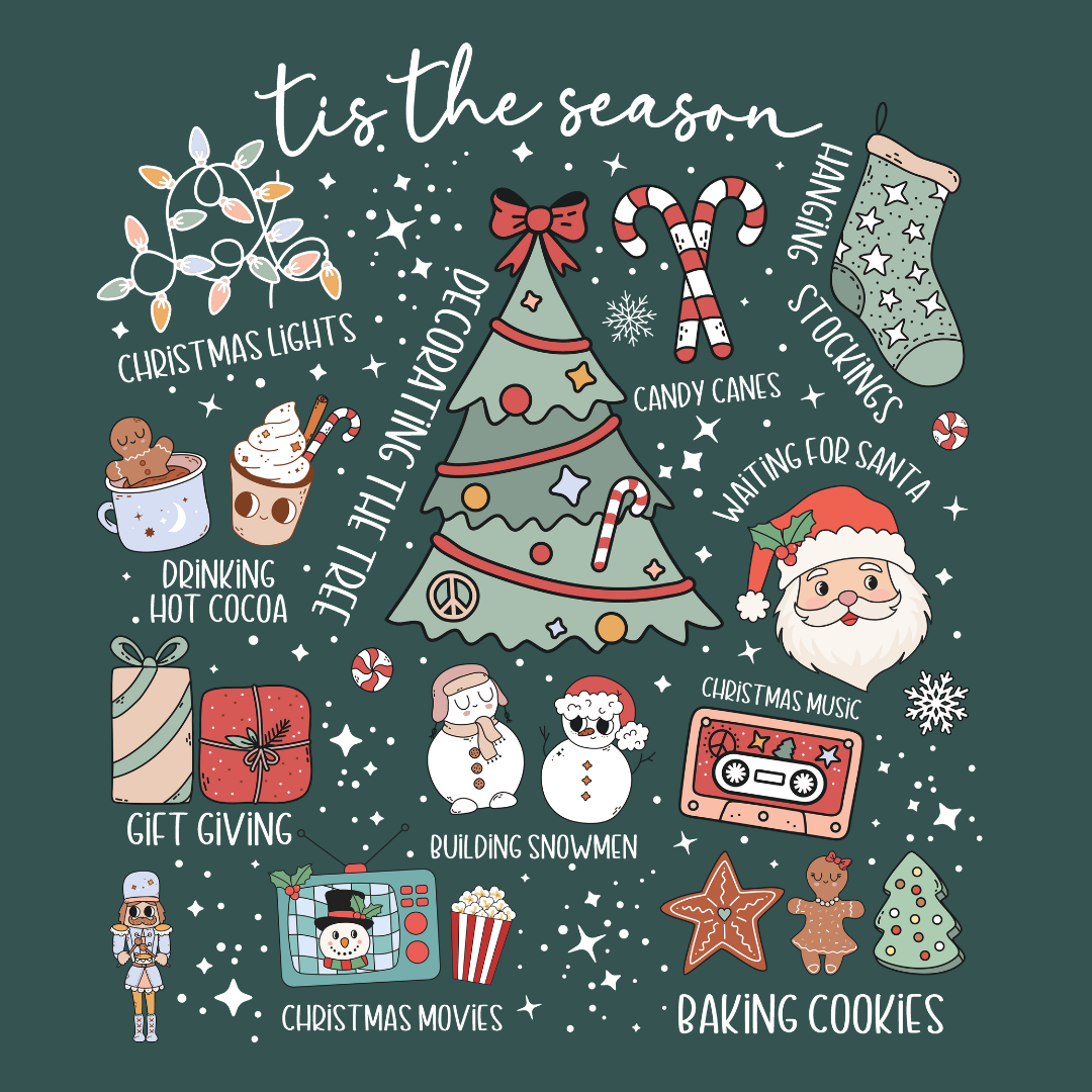 All your favourite holiday moments wrapped up in one cozy sweatshirt. The ’Tis the Season Sweatshirt is a joyful collage of everything that makes Christmas, well, Christmas. Think candy canes, cocoa, twinkle lights, snowflakes, and a healthy dose of merry chaos.